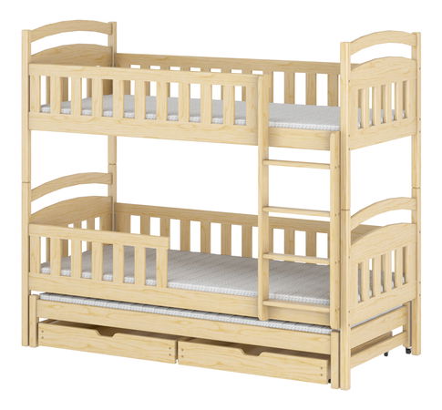 Annett je vysoká patrová postel vhodná zejména pro děti. Postel má tři lůžka – dvě lůžka mají ochranné bariéry a třetí lůžko se nachází pod spodním lůžkem. Postel je vhodná i do menších pokojů, kde potřebujete ušetřit prostor. Výška od země po horní lůžko je 135 cm, výška od země po spodní lůžko je 50 cm a výška od země po třetí lůžko je 35 cm. Postel je vyrobena z dřevěných prken. Použité barvy jsou ekologické a splňují potřebné certifikáty. K dispozici je také praktický úložný prostor v podobě dvou zásuvek.