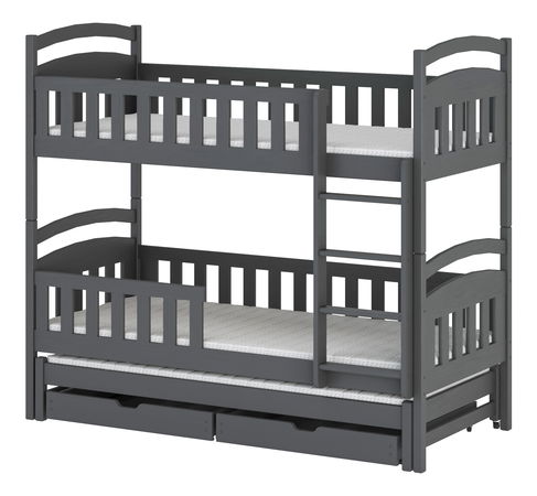 Annett je vysoká patrová postel vhodná zejména pro děti. Postel má tři lůžka – dvě lůžka mají ochranné bariéry a třetí lůžko se nachází pod spodním lůžkem. Postel je vhodná i do menších pokojů, kde potřebujete ušetřit prostor. Výška od země po horní lůžko je 135 cm, výška od země po spodní lůžko je 50 cm a výška od země po třetí lůžko je 35 cm. Postel je vyrobena z dřevěných prken. Použité barvy jsou ekologické a splňují potřebné certifikáty. K dispozici je také praktický úložný prostor v podobě dvou zásuvek.