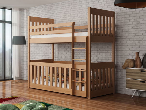 Patrová postel Cristine je vhodným doplňkem do dětského pokoje. Postel je vhodná pro dvě děti. Horní i dolní lůžko mají ochranné bariéry, které chrání děti během spánku. Vzdálenost mezi lůžky je 52 cm. Výška od země po dolní lůžko je 16 cm, výška od země po horní lůžko je 125 cm. Spodní lůžko je nízké a je tak vhodné i pro velmi malé dítě. Bariéra, která ho obklopuje, je vysoká 47 cm. Horní lůžko je vhodné pro starší dítě. Postel je vyrobena z borovicového dřeva. Jeho silná konstrukce zaručuje stabilitu během používání. Postel je barvená a lakovaná ekologickými laky a barvami.