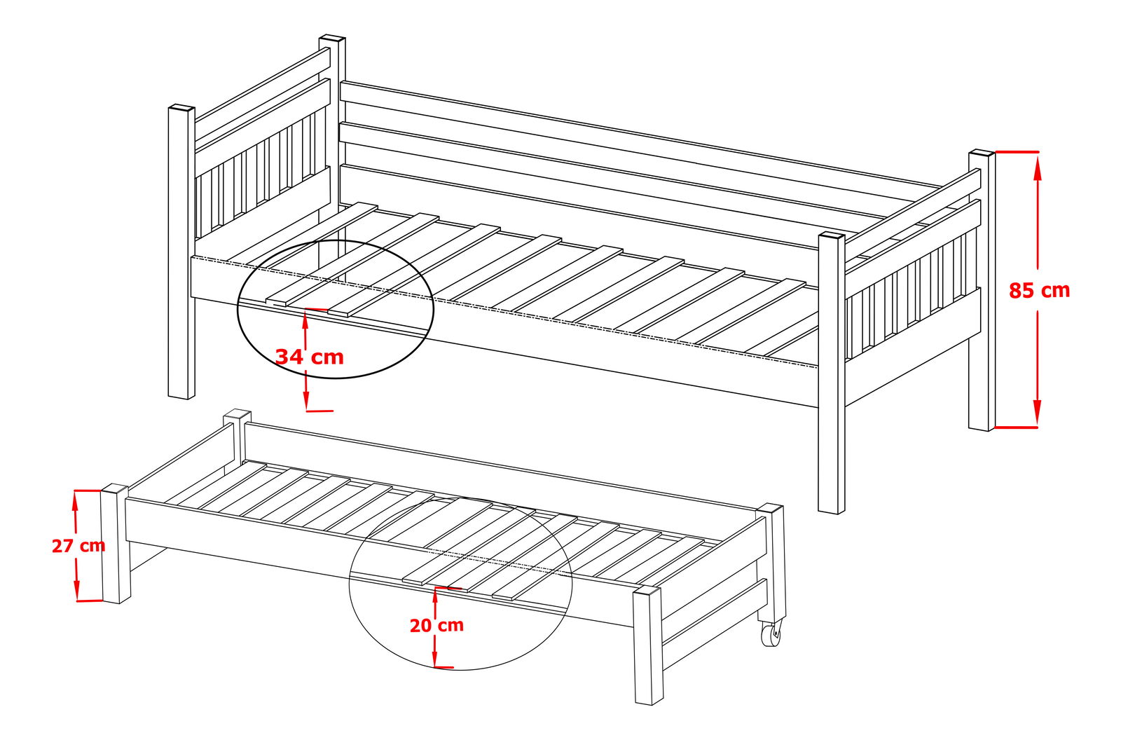 Rozkládací postel Danny je praktickým kouskem do dětského či studentského pokoje. Tento model se doporučuje zejména do menších interiérů. Postel byla ze tří stran zajištěna bariérou. Spodní lůžko je o 10 cm nižší než horní lůžko. Lze jej zasunout a jednoduše vysunout, čímž se šetří prostor v místnosti. Postel má také úložný prostor v podobě dvou zásuvek. Pryžová kolečka nepoškrábou podlahu.