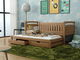 Nízká rozkládací postel Glynda pro 2 osoby je vhodnou postelí pro dvě děti. Doporučuje se zejména pro děti, které jsou příliš malé na patrovou postel. Postel má dvě lůžka na spaní - horní a spodní vysouvací. Horní lůžko se doporučuje zejména pro menší děti, které stále potřebují ochranu ve formě bariér. Obklopují postel ze všech stran a mají i užší průchod pro dítě, které se chce dostat do postele. Bariéru ze svislých příček lze kdykoliv odmontovat. Spodní lůžko je umístěno pod postelí a pohodlně ho vysunete ven. Postel tak zabírá přesně tolik místa jako jednolůžkový postel. Postel Glynda je vyrobena z borovicového dřeva, ošetřená lakem, který má všechny požadované certifikáty. Pro barvení se použila metoda rozprašování. Postel disponuje i úložným prostorem ve formě zásuvek na kolečkách. Gumové kolečka nepoškrábou podlahu.