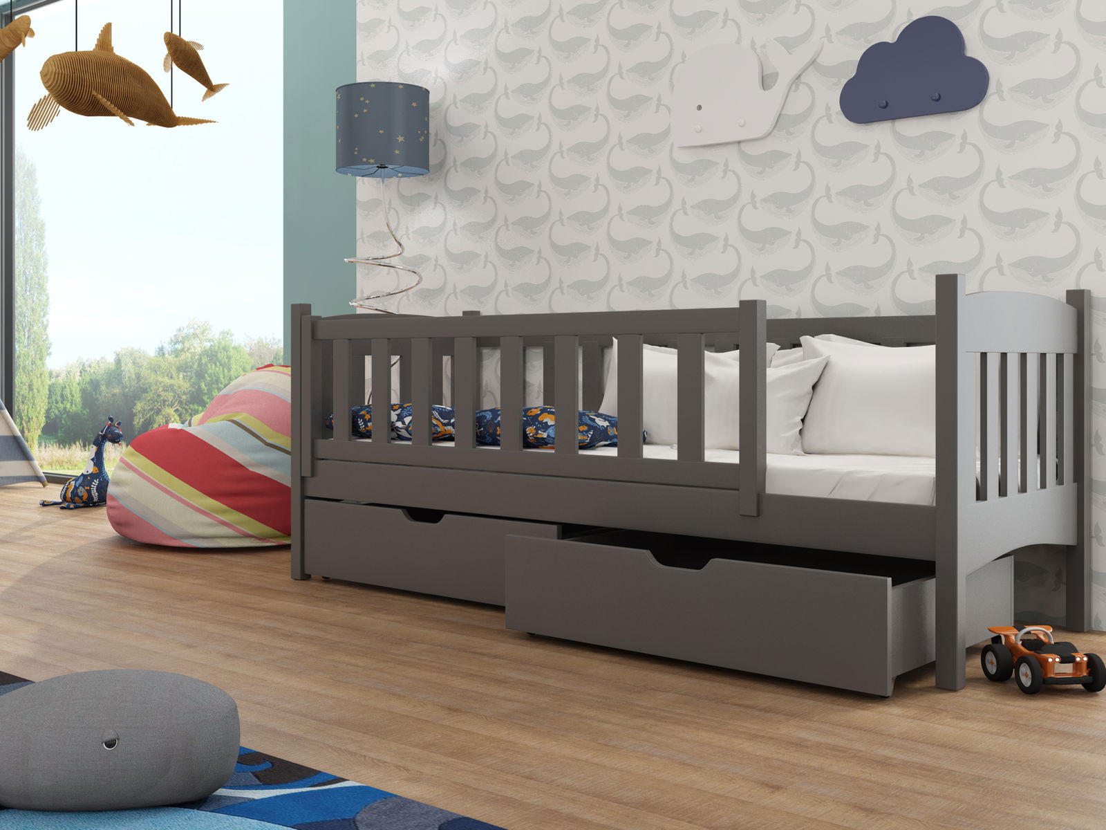 Dětská postel 90 cm Gussie (s roštem a úl. prostorem) (grafit)