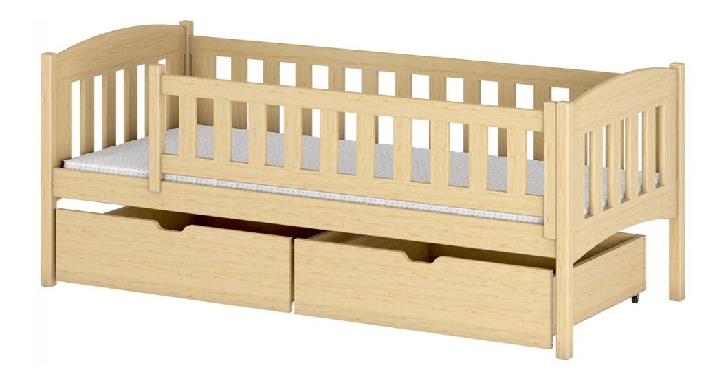 Obohaťte interiér svého dítěte o pohodlné místo ke spaní. Dětská postel Jerasto 90 se šuplíky je dokonalým základem pro každodenní relax. Model je vyroben z bezpečných materiálů a vybaven zábranou, která chrání dítě před vypadnutím během spánku. Montážní stranu si vybíráte ve fázi montáže. Postel je umístěna na vyvýšených nohách. Ve spodní části se nacházejí dva šuplíky, do kterých se bez problémů vejde ložní prádlo, hračky a další doplňky. Vybavené kolečky usnadňují přístup k věcem, které jsou tam umístěny.