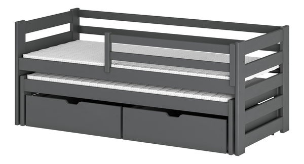 Rozkládací postel Keith je model určený pro 2 děti. Vyšší část postele má bariéry. Ty chrání dítě během spánku před pádem z postele. Bariéry lze kdykoli odmontovat. Spodní lůžko se nachází pod postelí a lze snadno vysunout. Rozkládací postel ušetří dostatek místa i v malé místnosti a vytvoří tak prostor pro zábavu i studium. Disponuje také úložným prostorem v podobě zásuvek na kolečkách. Gumová kolečka nepoškrábou podlahu.