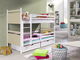 Stylová patrová postel Talia je skvělým doplňkem dětského pokoje. Zároveň šetří prostor, takže i v malých pokojích najde své využití. Vysoké patrové postele se doporučují pro trochu starší děti, které nemají problém vylézt po žebříku. Horní a dolní lůžko je zajištěno bariérami, které brání vypadnutí během spánku. Postel je vyrobena z dřevěných desek, které mají opracované hrany tak, aby nepředstavovaly nebezpečí pro děti. Používané barvy a laky jsou ekologicky bezpečné a splňují potřebné normy. Postel má i úložný prostor na kolečkách. Gumové kolečka nepoškrábou podlahu.
