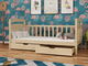 Postel Tobie je atraktivním nábytkem do dětského pokoje. Je zvláště vhodný pro děti, které již nepotřebují bariéry na všech stranách. Postel se skládá z rámu a vysokých bariér podél krátké a jedné dlouhé strany. Delší zábradlí lze připevnit na kteroukoli ze dvou stran v závislosti na poloze nábytku vzhledem ke stěně. Postel je vyrobena z borovicového dřeva, chráněna ekologickými, bezpečnými laky. Postel disponuje také úložným prostorem v podobě zásuvek pod postelí. Pryžová kolečka zásuvek nepoškrábou podlahu.