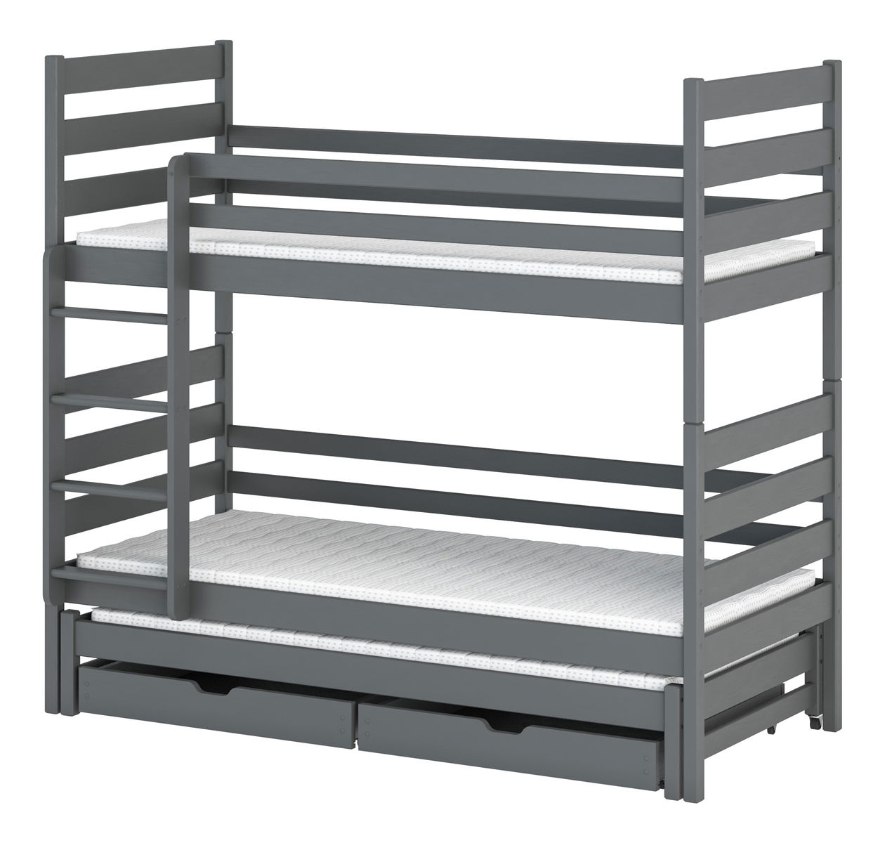 Patrová postel Tori je skvělou volbou v případě, že máte více dětí. Postel má dvě standardní místa na spaní a další výsuvné lůžko ve spodní části. Postel je vyrobena z borových desek stříkaných certifikovanými laky. Horní a střední lůžka mají ochranné bariéry, které chrání děti před vypadnutím z postele. Ve spodní části postele se nachází úložný prostor v podobě dvou šuplíků.