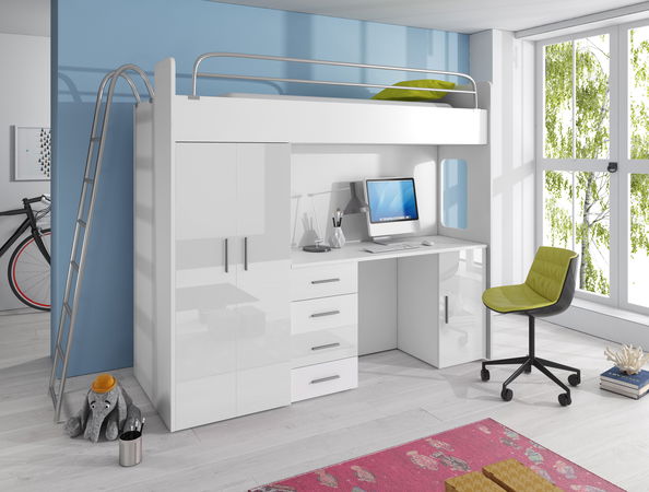 Velmi praktický set do dětského pokoje, kterého součástí je dětská postel, PC stolek a skříň. Ideální i do menších interiérů. Vyrobeno z kvalitní MDF desky, s dvířky a zásuvkami pokrytými akrylovou lakovanou fólií s tloušťkou 0,8 mm.