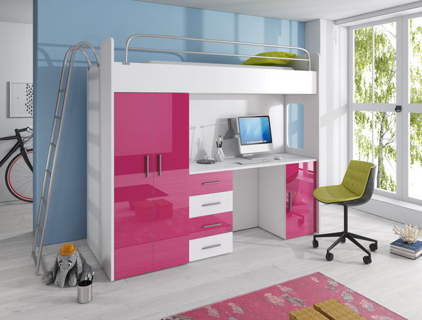 Velmi praktický set do dětského pokoje, kterého součástí je dětská postel, PC stolek a skříň. Ideální i do menších interiérů. Vyrobeno z kvalitní MDF desky, s dvířky a zásuvkami pokrytými akrylovou lakovanou fólií s tloušťkou 0,8 mm.