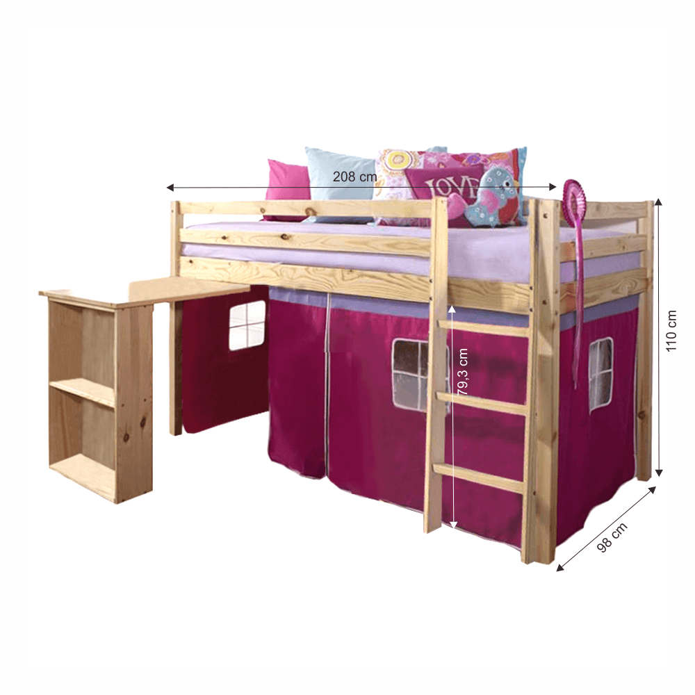 Dětská postel s PC stolkem 90 cm Alzaria (růžová)