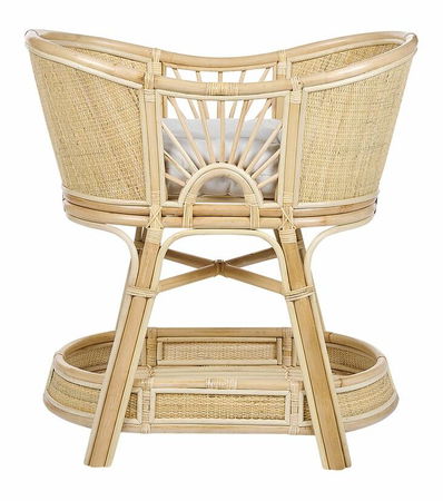 Doplňte dětský pokoj touto postýlkou pro miminko, která je ručně vyrobena z přírodního ratanu. Ve spodní části je umístěna praktická police, která vypadá stylově a zároveň je i účelová Jemně oblé tvary jsou doplněny měkkým polštářem. vnese špetku bohémského stylu.