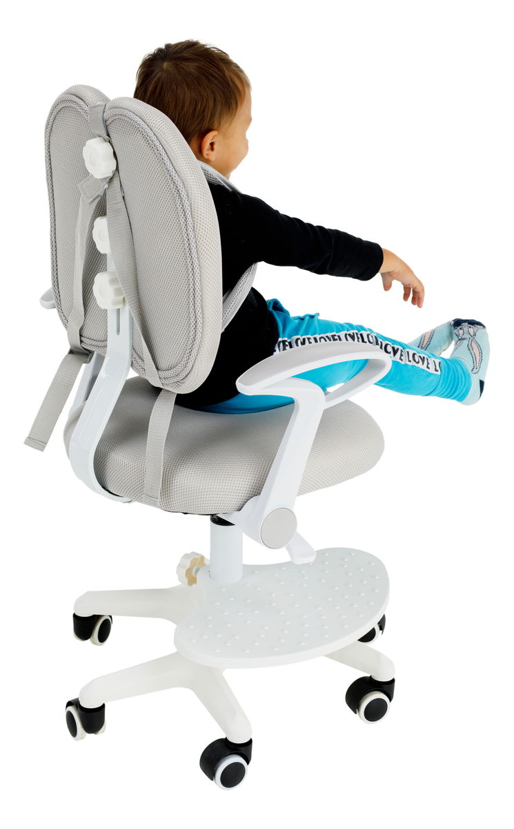 Chcete Vašim dětem vytvořit dokonalý studijní prostor? S otočnou ergonomickou židlí Anis zabezpečíte vašemu dítěti dokonalý a zdravý start do učení. Tato otočná, rostoucí židle vyniká multifunkčností a moderním designem. Anis mě nastavitelnou výšku a hloubku sedu, díky čemuž se přizpůsobí potřebám každého dítěte. Vybavená opěrkami rukou, které disponují funkcí sklápění. Pro menší děti je zde výškově nastavitelná a odnímatelná podnož na nohy. Opěrka na záda disponuje šlemi, které zajišťují bezpečnost, i správné držení těla. Stabilitu židle dodává pěticípá růžice, zakončená pogumovanými kolečky, které mají speciální bezpečnostní pojistku (brzdu) a tedy při sezení jsou kolečka zajištěny. Židle Anis je ergonomický společník pro děti všech věkových kategorií.