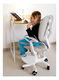 Otočná rostoucí židleNastavitelná výška seduNastavitelná hloubka seduOpěrky na ruce s funkcí sklopení dozaduSe sklopenými opěrkami židli zasunete pod stůlPodnožka na nohy s nastavitelnou výškouPodnožka je odnímatelnáSoučástí opěradla jsou popruhyPopruhy zvyšují bezpečnost při sezeníPopruhy pomáhají ke správnému držení tělaPopruhy jsou snímatelnéUniverzální kolečkaKolečka vhodná na měkké i tvrdé podlahyKolečka mají bezpečnostní pojistku (brzdu)Když dítě sedí na židli, kolečka jsou zajištěná a židlí nelze hýbatDodáváno v demontu