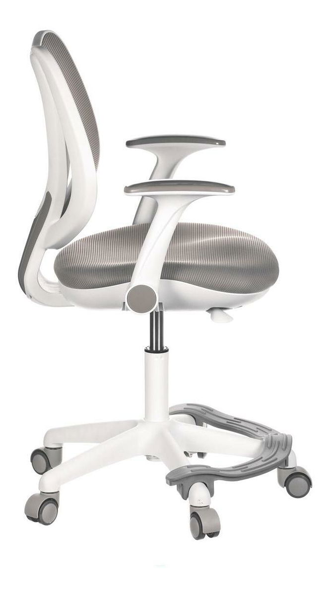 ZobrazitDětská židle v příjemných pastelových barvách spolu s bílou kostrou nabízí snadný a elegantní design. Židle má pevné opěradlo potažené prodyšným síťovaným materiálem. Sedák ve stejném potahu poskytuje dostatek pohodlí díky svému změkčení. Pro pocit pohodlí slouží pevné područky, které jsou na své vrchní části opatřeny lesklým plastovým povrchem v barvě potahového materiálu. Důležitá je také integrovaná opora nohou, která přispívá k pohodlnému sezení. Židle je vybavena speciálními funkčními kolečky, která se při zatížení automaticky zablokují, což zabraňuje nechtěným pohybům židle.