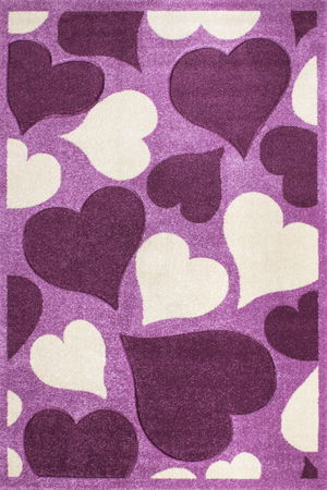 Koberec Amigo 300 Violet si Vás získá módními a hravými barvami, odolností a vysoce kvalitním zpracováním. Vzor koberce tvoří vkusně navrženy srdce v bílé a purpurové barvě. Vyroben je ze 100 % polypropylenu - heatset - frisée.
