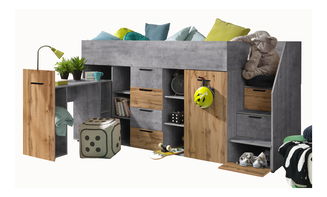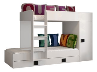 Dětská kombinovaná postel 90 cm Puro 15 (matná bílá + bílý lesk + růžový lesk)