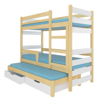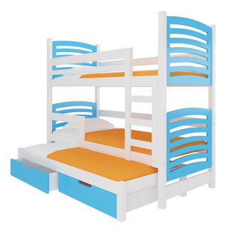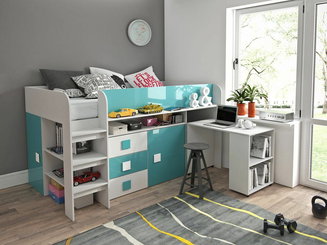 Patrová postel s psacím stolem 1 Tomek (Bílá + Tyrkysový lesk + Bílý lesk)