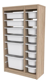 Lze je skvěle kombinovat s různými druhy dětského nábytku. V dětském pokoji se mohou doplňovat s postelí, stolkem, židlí nebo jiným dětským nábytkem. V obývacím pokoji může být regál skvělým doplňkem u TV stolku nebo obývací stěny.