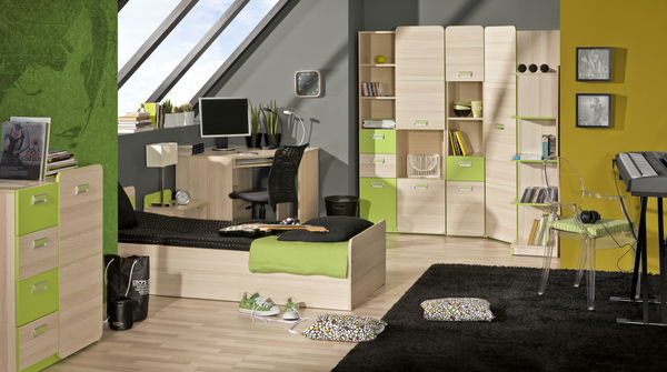 Dětský pokoj Lavendon 3 je moderní dětský pokoj v zelené barvě, který je ideální pro vaše dítě. Tento pokoj má stylový a praktický design se spoustou úložného prostoru, který pomůže udržovat pořádek v pokoji. Součástí pokoje jsou postel, noční stolek, skříň a psací stůl s policemi. Všechny kusy nábytku jsou vyrobeny z kvalitních materiálů, které zaručují dlouhou životnost a bezpečnost pro vaše dítě. Tento dětský pokoj bude dokonalým místem pro vašeho malého miminko na hraní, učení a odpočinek.