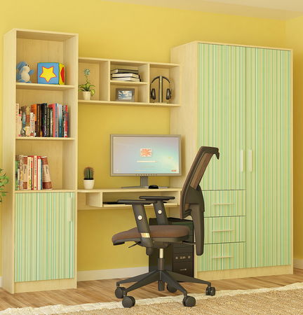 Sestava Simba bude svěžím doplňkem všech studentských a dětských pokojů. Prvky, z nichž se skládá Simba, poskytují praktické řešení pro plnohodnotný studentský život - skříň má dostatek prostoru pro oblečení a doplňky, regál disponuje policemi na odkládání knih a šikovný psací stolek lze využít pro psaní domácích úkolů, či na práci s počítačem. Pestré barevné provedení rainbow zelená zkrášlí nejeden studentský či dětský pokoj.