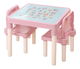 Dětský set Baello obsahuje stolek a dvě židle vhodné pro kreslení a hraní. Stolek má veselý motiv abecedy a je vyroben z plastu v růžové/korálové barvě. Rozměry stolu jsou 51,5x51,5x44 cm a židle mají rozměry 30x28x46 cm s výškou sedu 28 cm a nosností 50 kg. Set je dodáván v demontu.