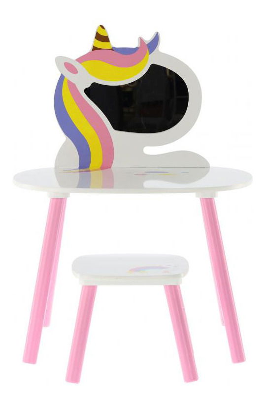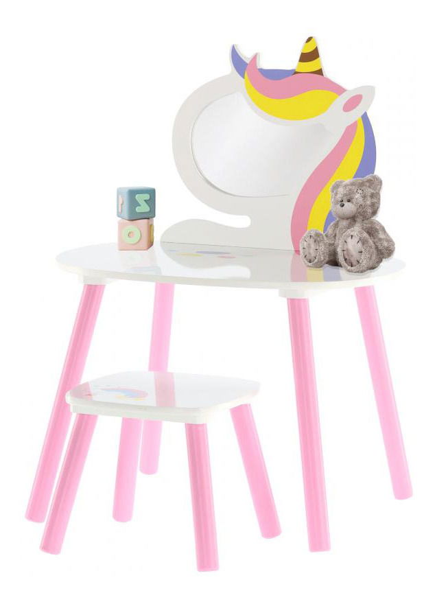 Která malá holka by nechtěla svůj toaletní stolek. Nyní máte jedinečnou šanci své holčičce jeden pořídit. Náš toaletní stolek s kouzelným jednorožcem pro dívky je dokonalým řešením pro malé princezny. Určitě uspokojí požadavky i těch nejnáročnějších malých dam. Ideální do dětského pokoje. Poslouží také jako zajímavá dekorace. Toaletní stolek jistě osloví každou dívku, která se při líčení rádo obléká a napodobuje svou mámu. Ke stolku přísluší zrcadlo ve tvaru jednorožce a taburetka.