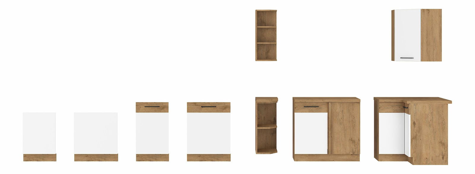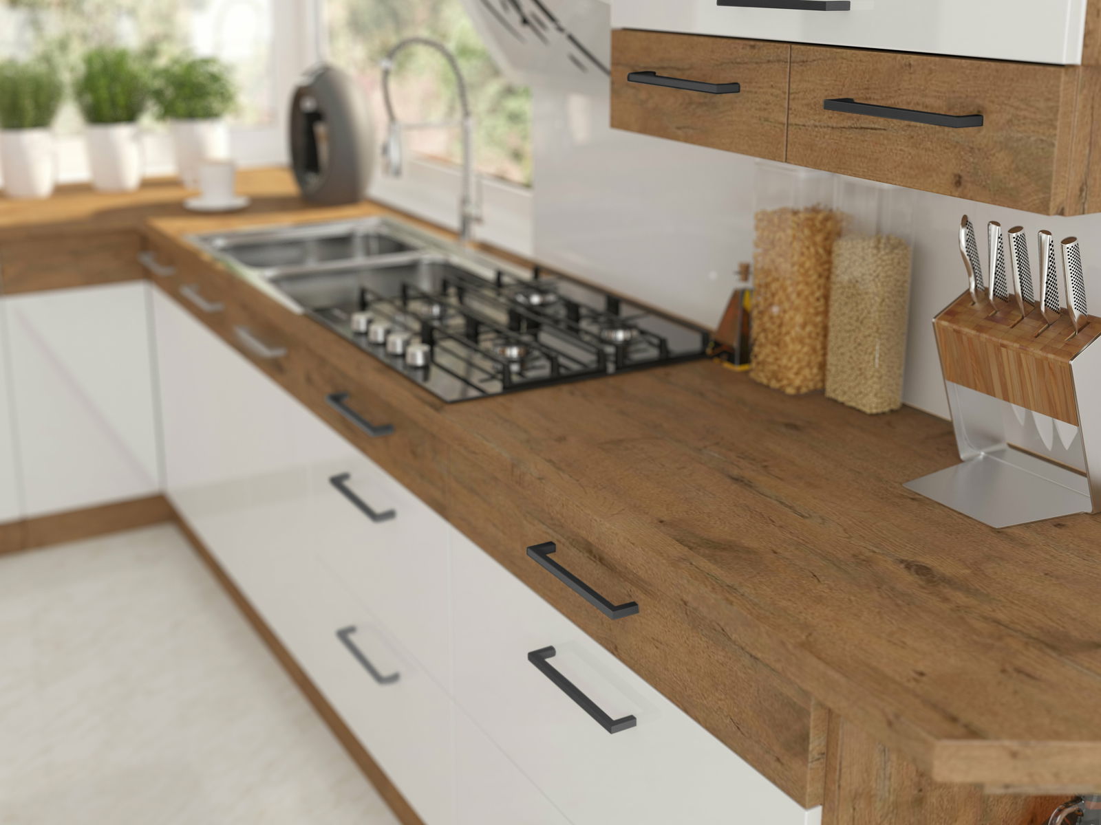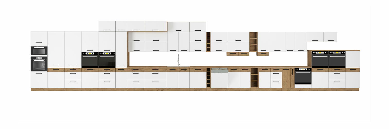 Staňte se pro tuto chvíli architektem a designér vlastní kuchyně. Nabízíme Vám směs designových skříněk v barvě bílá, šedá a bordó v kombinaci dubu Lancelot. Přáli jste si mít troubu v úrovni učí, nebo ji máte rádi v dole. Přáli jste si skříňky s výklopnými dvířky nebo klasicky doprava či doleva. Výběr je na vás a na vaší fantazii.