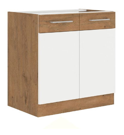 Dolní drezová kuchyňská skříňka 80 ZL 2F BB Velaga (lesk bílý + dub lancelot)