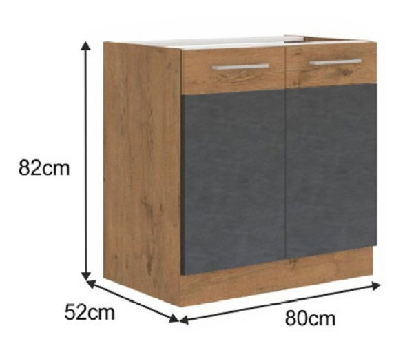 Dolní dřezová kuchyňská skříňka Velaga za 2000 Kč s výškou 82 cm, šířkou 80 cm a hloubkou 52 cm je ideální volbou pro každou kuchyni. Skříňka je vyrobena z kvalitních materiálů, které zaručují její odolnost a dlouhou životnost. Šedá matná a dub lancelot barva dodávají skříňce moderní vzhled a zároveň se dokonale hodí k ostatním elementům kuchyně. Skříňka má dvě posuvné zásuvky, které umožňují efektivní uskladnění nádobí a kuchyňských pomůcek. Skříňka je snadno montovatelná a přichází s kompletním montážním materiálem. Je to skvělá koupě, která vám přinese praktické a stylové řešení pro vaši kuchyni.