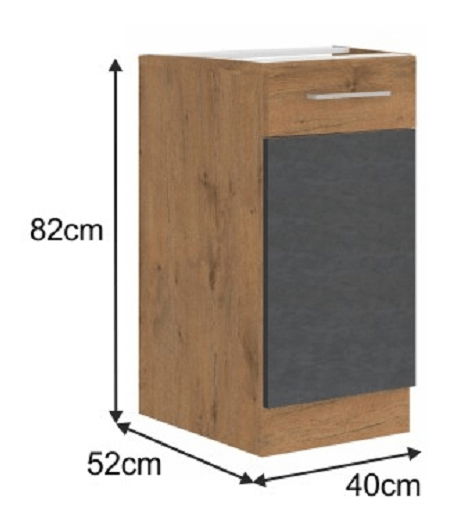 Dolní kuchyňská skříňka 40 D 1F BB Velaga (šedá matná + dub lancelot)