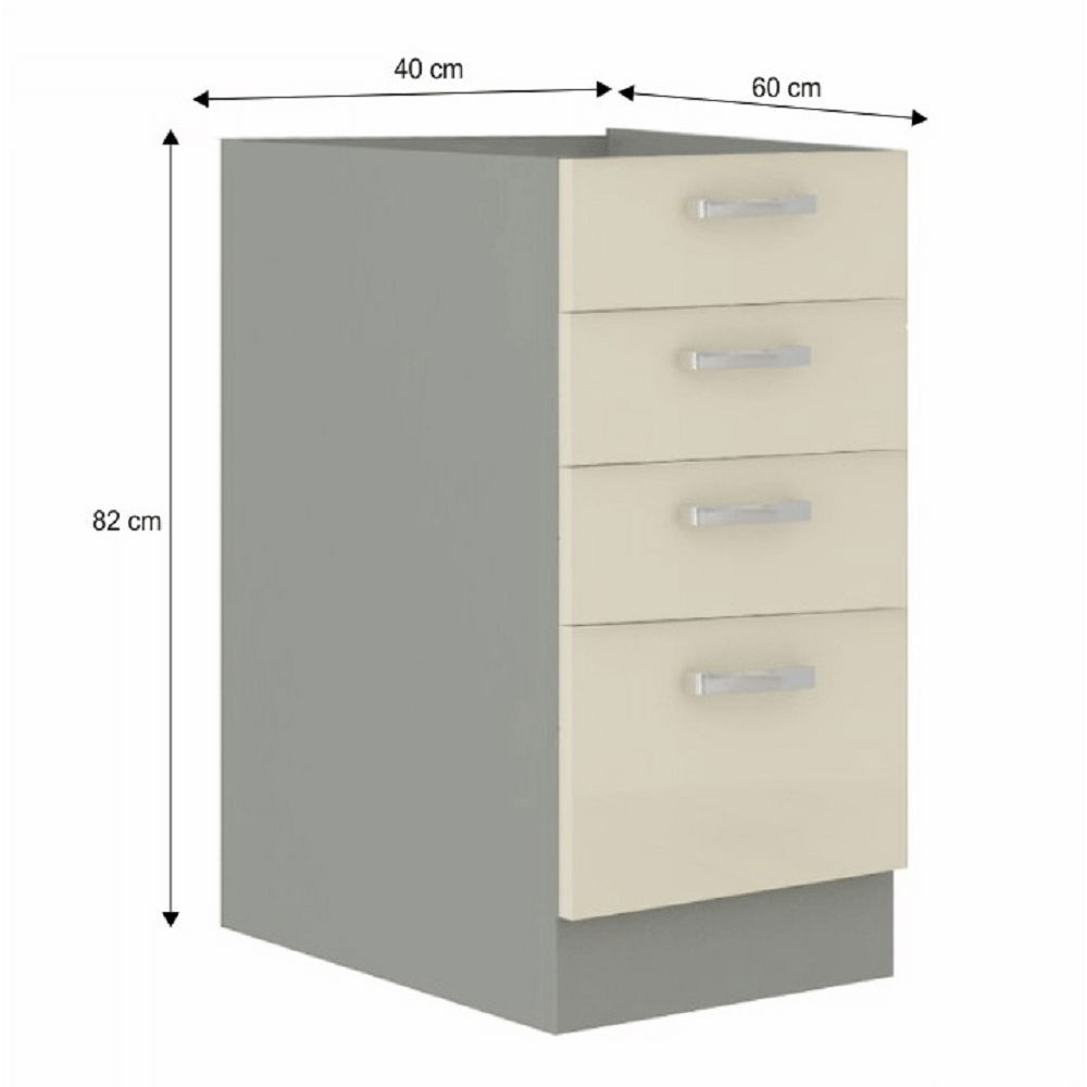 Dolní kuchyňská skříňka 40 D 4S BB Pleitton (krémový lesk) *výprodej