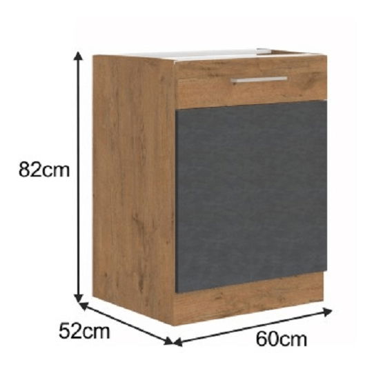 Dolní kuchyňská skříňka 60 D 1F BB Velaga (šedá matná + dub lancelot)