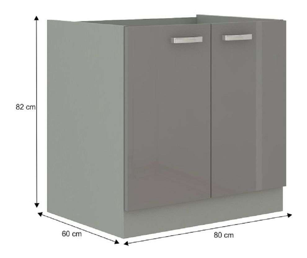Dolní kuchyňská skříňka 80 D 2F BB Pleitton (lesk šedý)