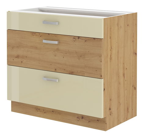 Dolní kuchyňská skříňka Arryn 80 D 3S BB (dub artisan + lesk krémový)
