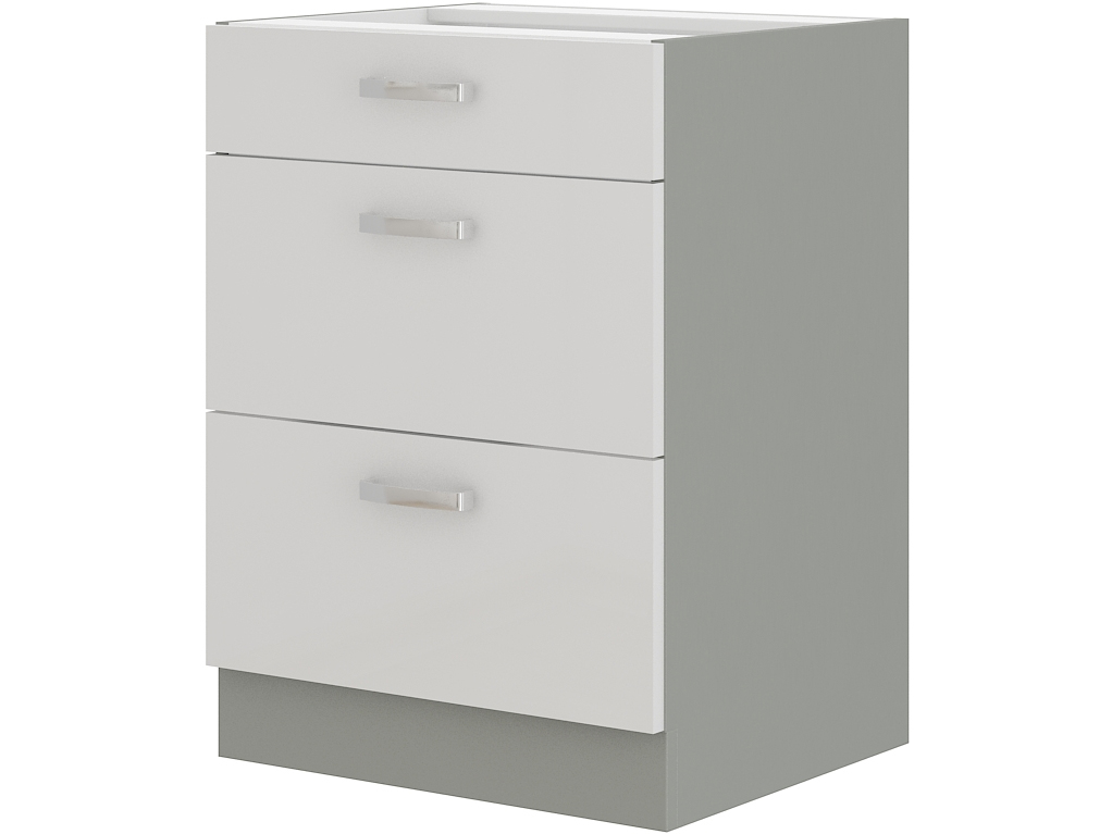 Dolní kuchyňská skříňka Brunea 60 D 3S BB (šedá + lesk bílý)