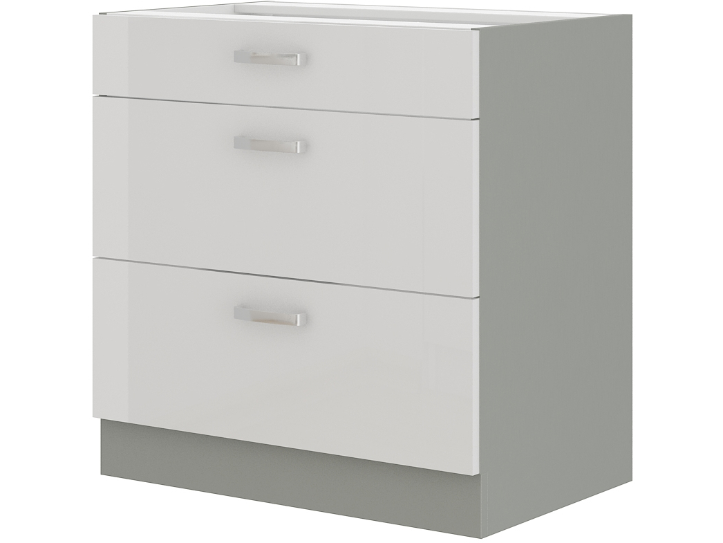 Dolní kuchyňská skříňka Brunea 80 D 3S BB (šedá + lesk bílý)
