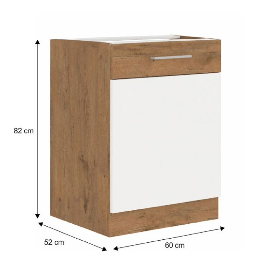 Dolní kuchyňská skříňka D60 1F BB Velaga (lesk bílý + dub lancelot)