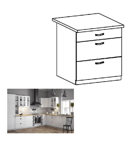 Dolní kuchyňská skříňka D80S3 Provense (bílá + sosna andersen)