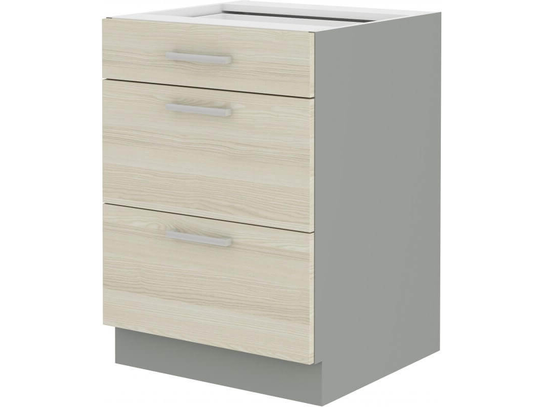 Dolní skříňka se třemi zásuvkami kuchyňského sektorového systému v moderním stylu. V nabídce naleznete i další varianty skříněk a regálů.