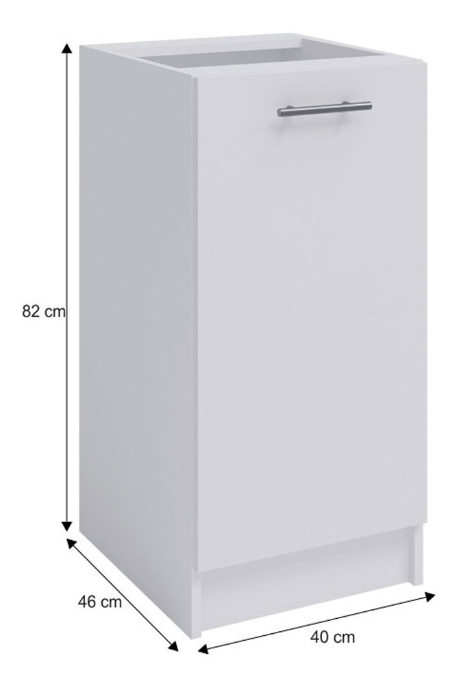 ZobrazitDolní kuchyňská skříňka Flor S-40 má výšku 82 cm, šířku 40 cm a hloubku 46 cm. Je vyrobena z DTD laminového materiálu v bílé barvě s kovovými úchyty a moderním tichým systémem zavírání dvířek. Skříňka se dodává bez pracovní desky a lze si dokoupit univerzální dřez v našem obchodě. Tloušťka materiálu je 16 mm a skříňky jsou dodávány v demontu s předvrtanými panty na pravé straně. Sektorové skříňky jsou také dostupné bez pracovní desky. Pro vaši kuchyni je tato skříňka ideálním prvkem v útulném a moderním designu.