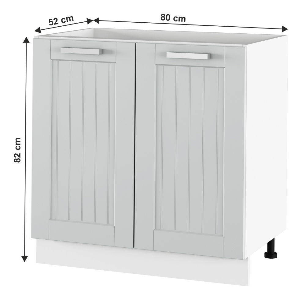 Dolní kuchyňská skříňka Janne Typ 60 (světle šedá + bílá) s výškou 82 cm, šířkou 80 cm a hloubkou 52 cm je dokonalým doplňkem každé kuchyně. Světle šedá a bílá barva skříňky spolu dokonale ladí a vytvářejí moderní vzhled. Skříňka je vyrobena z kvalitních materiálů, které zaručují její pevnost a odolnost. Vnitřní prostor skříňky je dobře promyšlený a nabízí spoustu úložného prostoru pro kuchyňské vybavení. Skříňka je také vybavena kvalitními úchyty, které umožňují snadné otevírání a zavírání dveří. Kupující si může být jist, že dolní kuchyňská skříňka Janne Typ 60 je dokonalou volbou pro každou kuchyni.