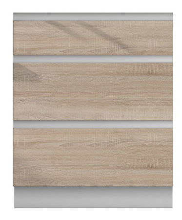 Dolní kuchyňská skříňka Lilouse D 60 3 zás je součástí stylové kuchyňské sestavy Line, která bude vytvářet moderní prostor ve vaší kuchyni. Skříňka má tři zásuvky se systémem tichého darazu a dodává se s pracovní deskou a dolní lištou. Je vyrobena z kvalitní laminované dřevotřísky a jednotlivé skříňky mají systém tichého uzavírání dvířek a tichého dorazu zásuvek. Skříňka je v bílém provedení s dvířky z dubu Sonoma a lze si zvolit ze dvou barevných provedení. Skříňka má rozměry 60x54,5x82 cm a je dodávána v demontu. Její moderní design a úložný prostor jsou ideální pro vaši kuchyni. Je také možno dokoupit univerzální levý nebo pravý dřez LAY ON a pracovní desku navíc.