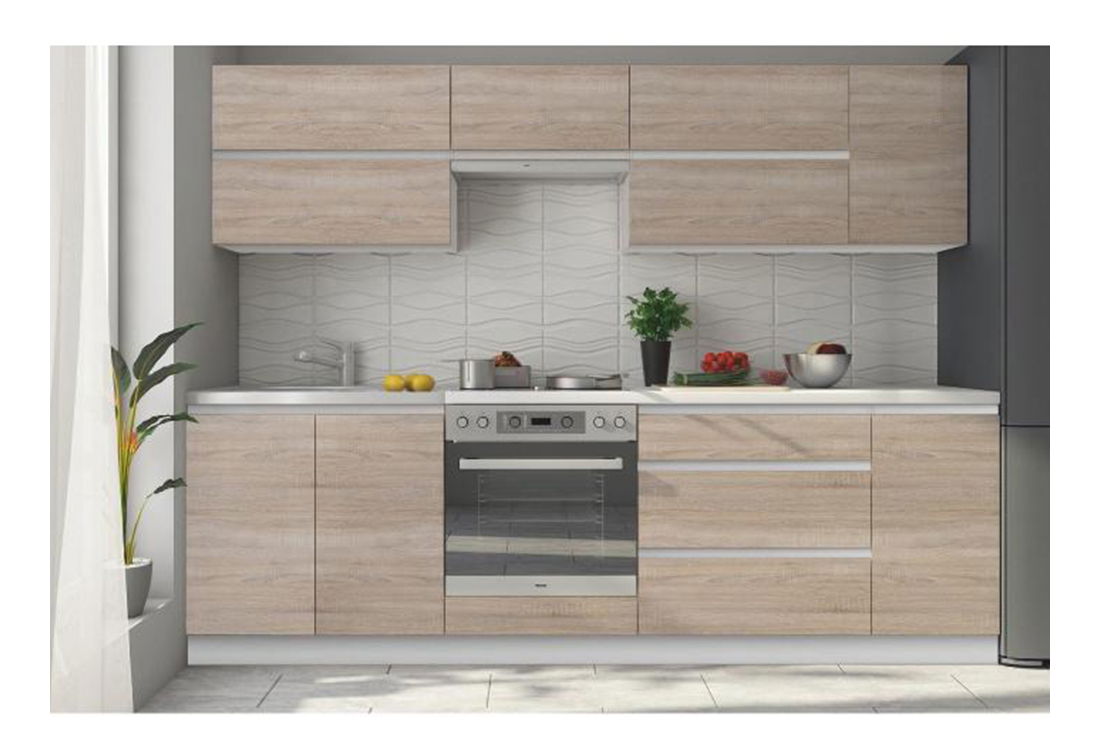 Stylová kuchyňská sestava Line vytvoří z vaší kuchyně moderní prostor, ve kterém bude radost vařit. Kychynská sestava je vyrobena z kvalitní laminované dřevotřísky. Pracovní deska je silná až 38 mm. Jednotlivé skříňky mají systém tichého uzavírání dvířek a tichého dorazu zásuvek.