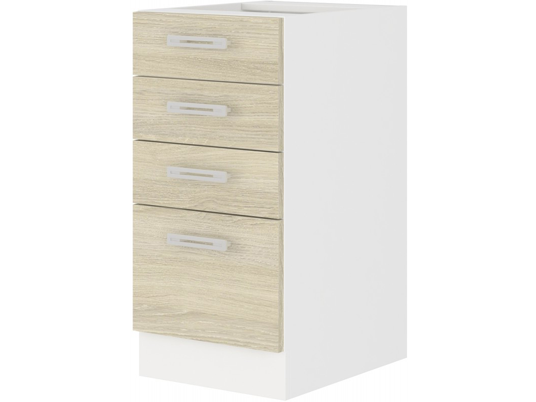 Dolní skříňka se čtyřmi zásuvkami kuchyňského sektorového systému v elegantním stylu. Ideální pro rozdělení příborů a vařeček. Do další zásuvky je třeba destičky a poklice. Třídění nebylo nikdy snazší. Skříňka je vyrobena z kvalitní laminované dřevotřísky.