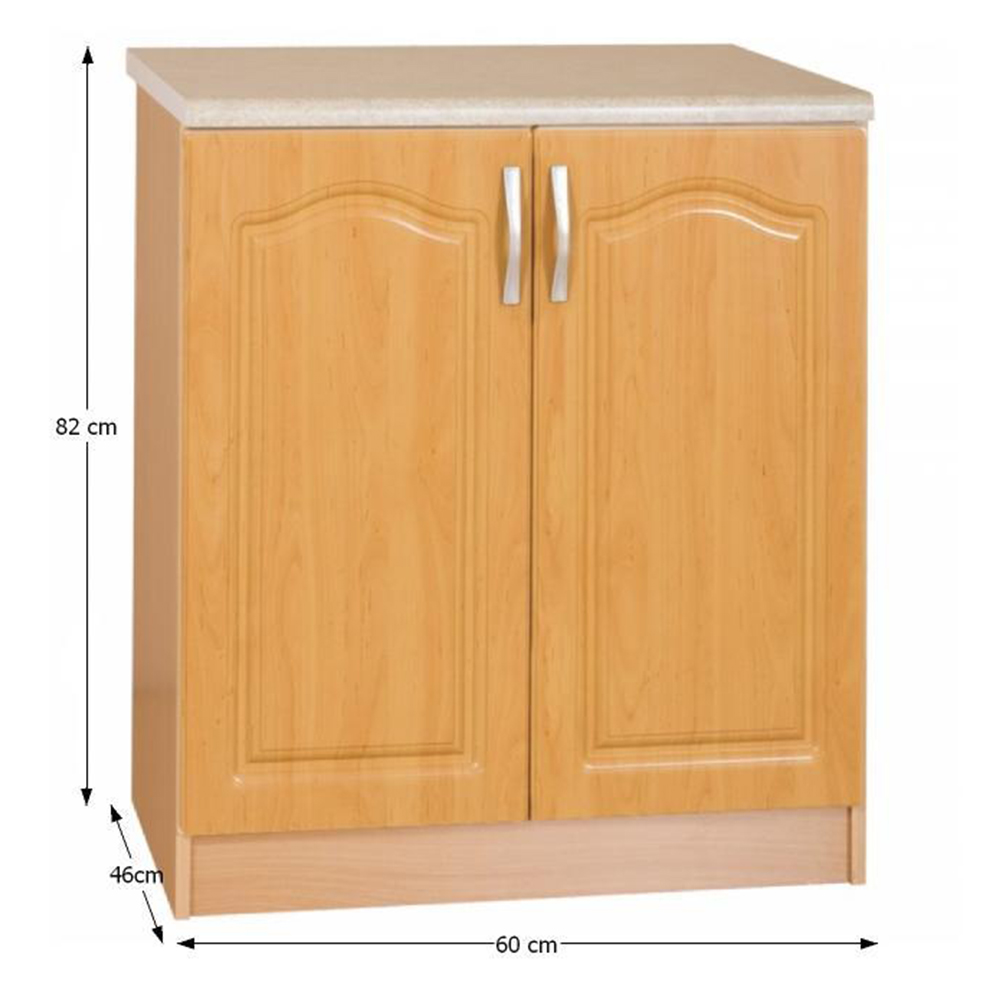 Dolní kuchyňská skříňka Leite MDF klasik S60 o výšce 82 cm, šířce 60 cm a hloubce 46 cm je vyrobena z DTD laminované a MDF fóliované desky v provedení olše. Skříňka má dvě dvířka a je dodávána bez pracovní desky. Tloušťka materiálu je 16 mm. Skříňka je dodávána v demontu.