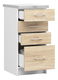 Kuchyňská skříňka Lula s deskou je dokonalým řešením do každé kuchyně. Nábytek tvoří 4 zásuvky – tři menší a jedna větší – do kterých se vejde množství věcí potřebných pro přípravu každodenních jídel. Skříňka je navržena moderně s bílým korpusem a čely v módním odstínu dub sonoma. Světlé rukojeti dokonale doplňují celek. Nábytek se vyznačuje nejen oku lahodícím designem, ale především velmi dobrou kvalitou. Je vyroben z kvalitní laminované desky, která je odolná vůči oděru a je odolná a pevná. Tento i další návrhy z kolekce Lula se budou velmi dobře hodit do velkých i malých kuchyní, které vám umožní funkční uspořádání.