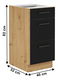 Dolní kuchyňská skříňka Meriel 40 D 3S BB v černo-dubovém provedení je ideální volbou pro ty, kteří hledají praktické a kvalitní řešení pro svoji kuchyni. Skříňka je vyrobena z DTD laminovaného materiálu o tloušťce 16 mm, což zaručuje její odolnost a dlouhou životnost. S trojicí zásuvek, které mají úchyty o délce 19,2 cm a tiché uzavírání, je tato skříňka skvělým úložným prostorem pro různé kuchyňské potřeby. Vnitřek skříňky je v bílé barvě a skříňka je vybavena také dolní lištou/soklem. Vzhledem k tomu, že neobsahuje pracovní desku, je vhodnou volbou pro ty, kteří si chtějí vybrat vlastní pracovní desku dle svého vkusu a potřeb.