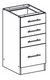 Dolní kuchyňská skříňka se zásuvkami. Vybavena je 4 zásuvkami. Spodní zásuvka je hlubší. Dodávána bez horní pracovní desky, kterou si však můžete přikoupit v našem obchodě.