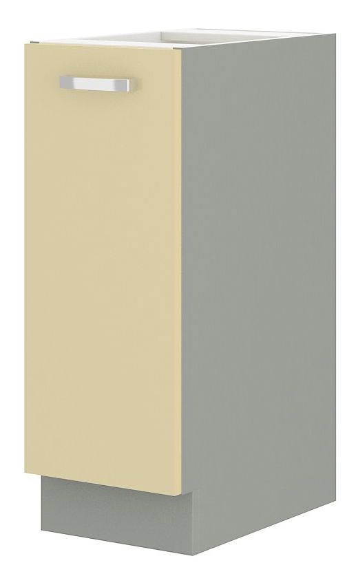 Dolní skříňka na koš Kelyn 30 D CARGO BB je moderní skříňka pro koš z kuchyňského sektorového systému. Má lesk krémový korpus a šedý přední panel. Skříňka je vyrobena z MDF a laminované dřevotřísky s kovovými úchyty. Obsahuje chromový cargo koš, 2 police a zlepšené vyvrtané otvory pro rukojeť. Skříňka má boční montáž na pravou stranu. Poznámka: Pracovní deska není součástí ceny.