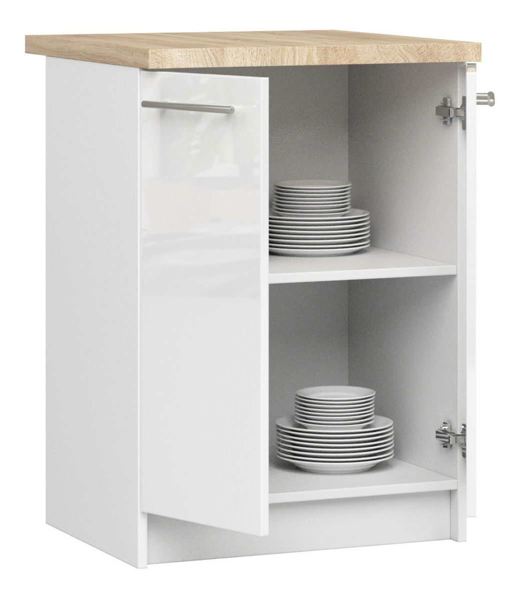 Dolní kuchyňská skříňka Ozara S60 2D (bílá + bílý lesk)